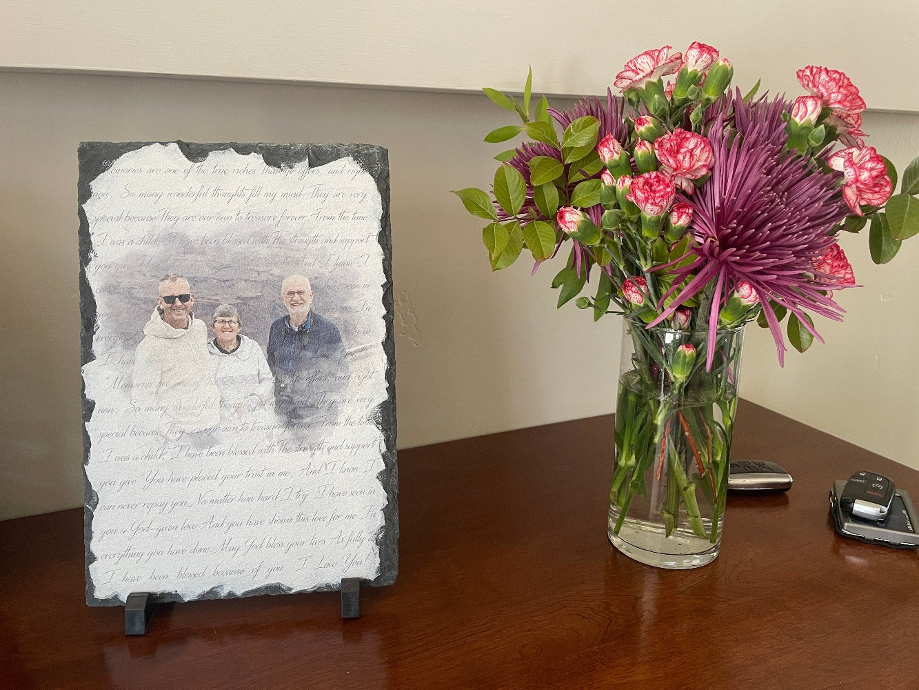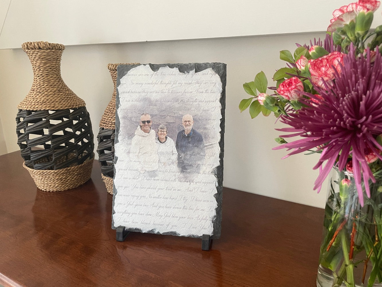-- Handcrafted in America at Sassy Squirrel Ink Studios, CA, we individually select every piece of slate and use state of the art UV technology to imprint your design onto your plaque. This results in an incredibly high definition finish.